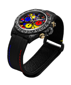 Definitely not a conservative timepiece. The handcrafted dial, high-end carbon bezel and case highlight the personality of its owner. An exclusive custom Daytona, crafted for special collectors, only very few in the world can get its hands on this.